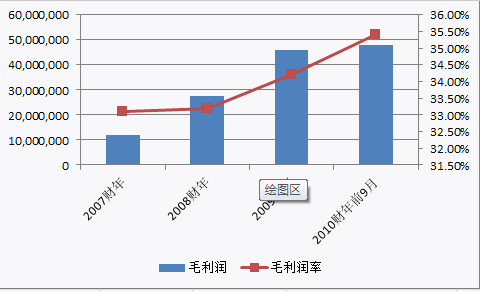 2007年以來,軟通動力的毛利潤逐年增長,從2007年的1029萬美元增加到2009年的4600萬美元;2010年前三季度利潤達到4786萬美元;其毛利率也從2007年的28.2%提高到2009年的34.2%。