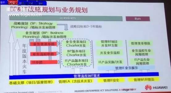 華為在做業務變革的時候,關心的是把重要的事情做好,所以質量要求特別高,但是進度不是那么重要。同時,IT建設必須與公司發展戰略和業務轉型緊密結合,IT不能單打獨斗。