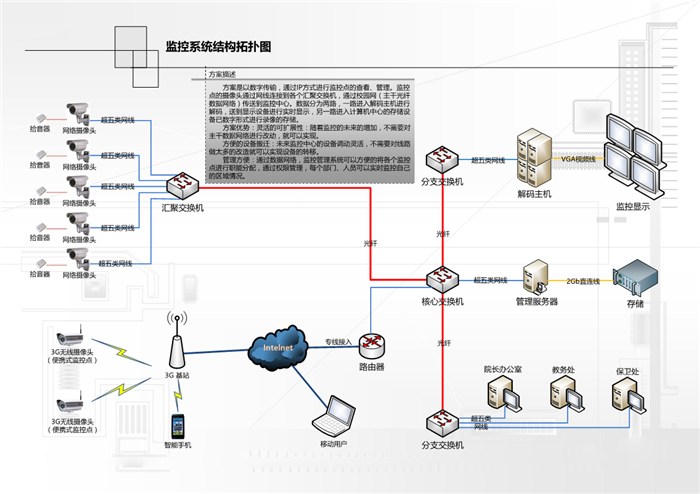 視頻監(jiān)控從第一代模擬視頻監(jiān)控系統(tǒng),第二代技術(shù)模擬+數(shù)字混合監(jiān)控系統(tǒng),與第一代模擬技術(shù)相比,主要是在后期與終端的圖像處理相比,存儲(chǔ)方式的改進(jìn),數(shù)字視頻壓縮技術(shù)的使用。第三代數(shù)字視頻監(jiān)控系統(tǒng)在視頻信息的采集、傳輸、顯示和存儲(chǔ)方面采用數(shù)字信號(hào)處理的監(jiān)控系統(tǒng)。由于采用數(shù)字網(wǎng)絡(luò)傳輸武漢安防監(jiān)控,故又稱(chēng)網(wǎng)絡(luò)視頻監(jiān)控系統(tǒng)。安防行業(yè)涉及的系統(tǒng)非常廣泛,如視頻監(jiān)控系統(tǒng)、門(mén)禁管理系統(tǒng)、報(bào)警系統(tǒng)、樓宇自動(dòng)化系統(tǒng)、電子巡更系統(tǒng)、公共廣播系統(tǒng)等。